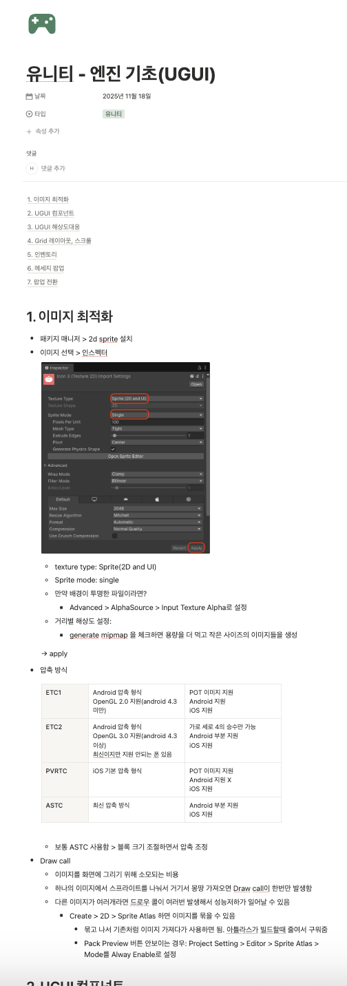 - ETC1: 투명도를 지원하지 않는다. 투명도가 필요하면 별도의 아틀라스를 만들어야 한다. 압축률은 1/6 정도다.