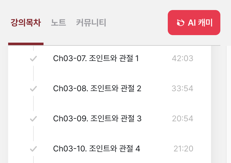 오늘은 게임물리 두번째 파트인 조인트와 관절에 대해 들었다.